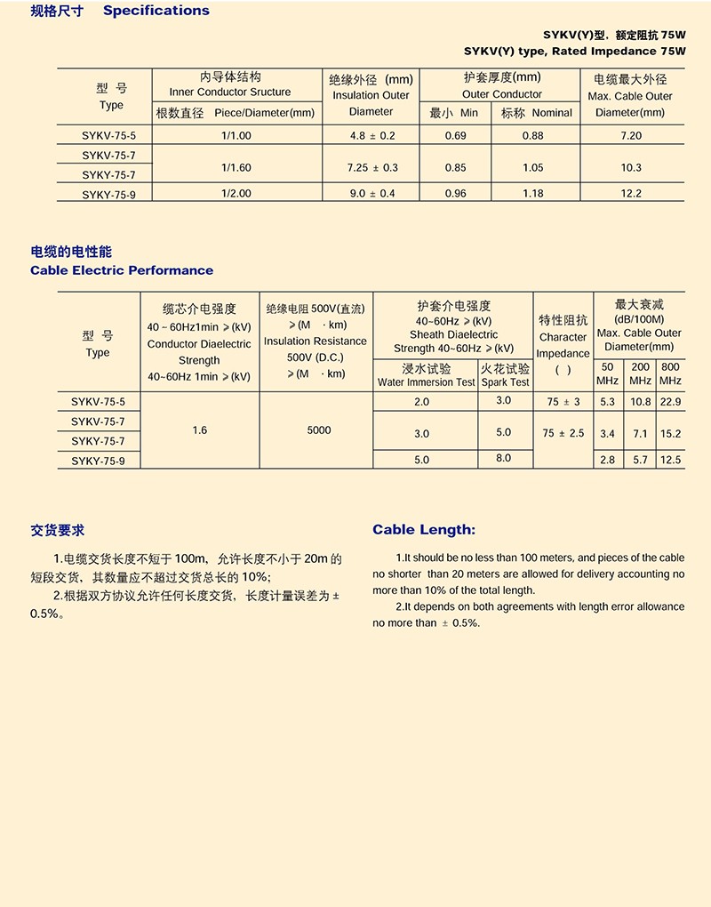 電纜分配系統用縱孔聚乙烯絕緣同軸射