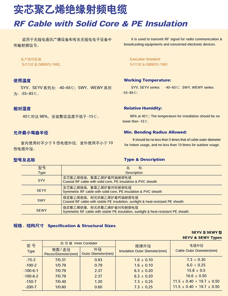 實(shí)芯聚乙烯絕緣射頻電纜