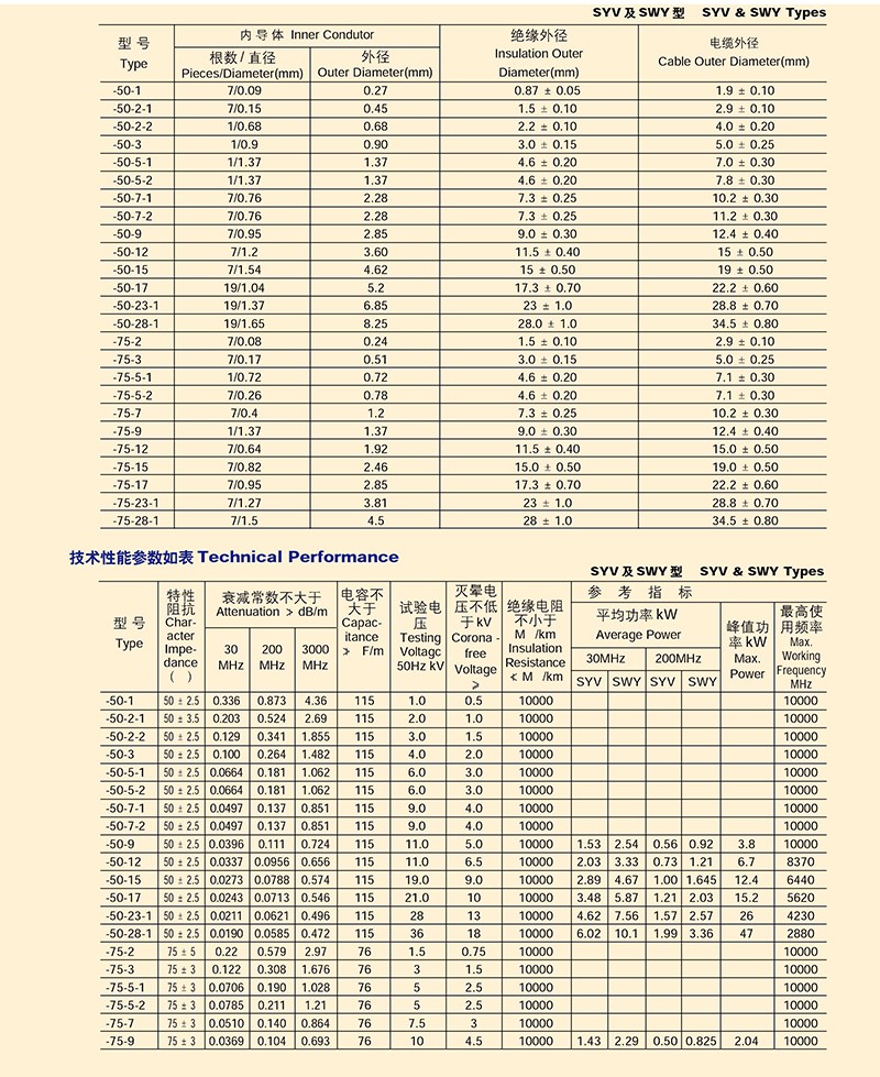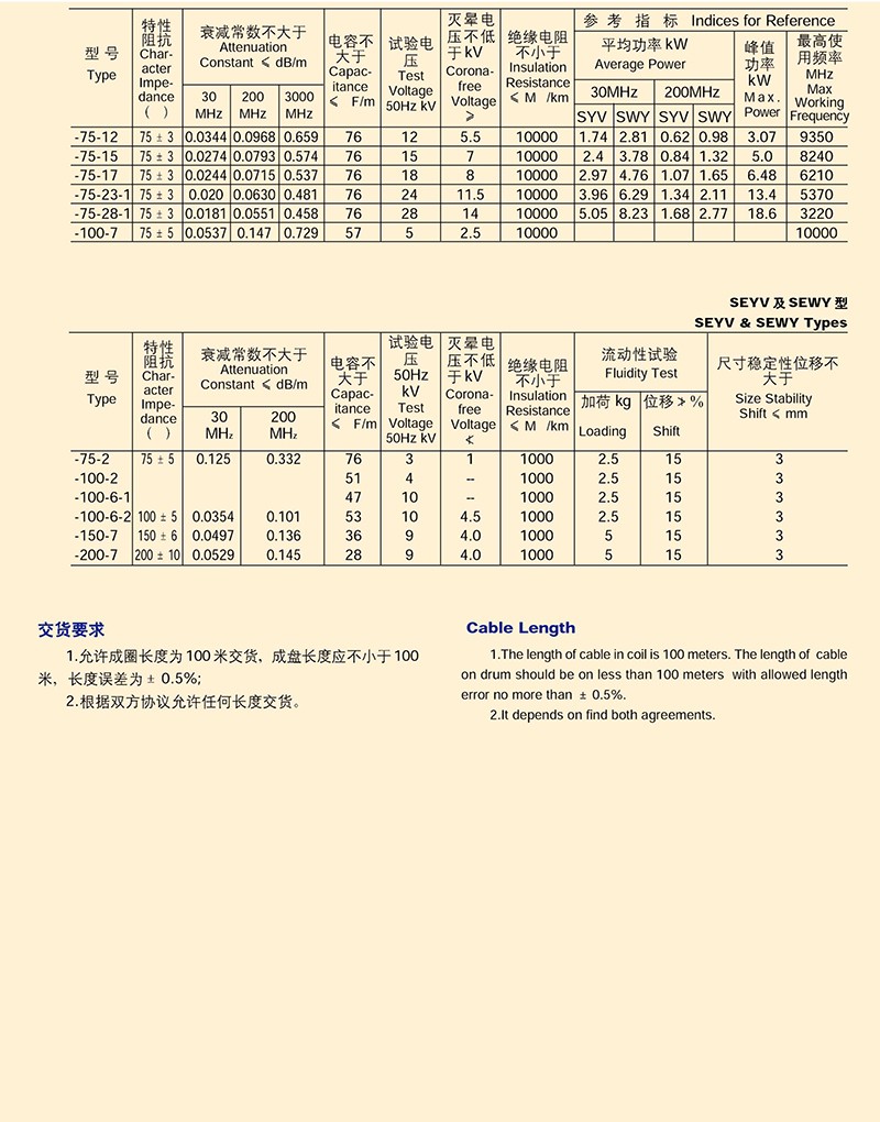 電纜分配系統用縱孔聚乙烯絕緣同軸射
