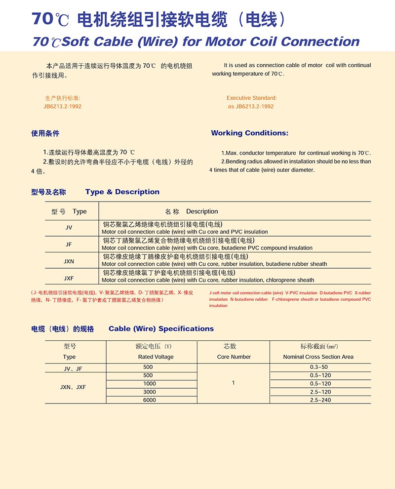 70℃機電繞組引接軟電纜(電線(xiàn))